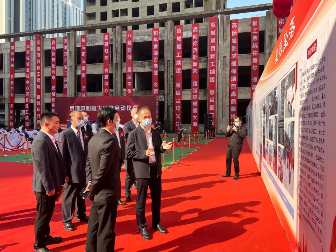 “民为国家之根本,法乃天下之公器”,星辰公司的重整,关乎近500户购房人的切身利益,关乎社会稳定和重大民生,关乎政府和法院的形象与公信力,同方自受命以来,深感责任重大,使命光荣,不敢懈怠。在市区两级政府及各委办局的强力推进下,在市法院的正确指导下,在重整投资人的大力支持下,停工8年的星辰公司“京城中心”项目成功重启、复工续建。这是星辰公司重整的一个重大转折点,同方将继续服务好债权人、投资人,做好重整的后续工作,衔接好不动产权证的办理工作,推动项目早日竣工验收和具备入住条件。同方将协助重整投资人引入优质物业,提升园区品质,让停缓建工程最终变成安居工程。